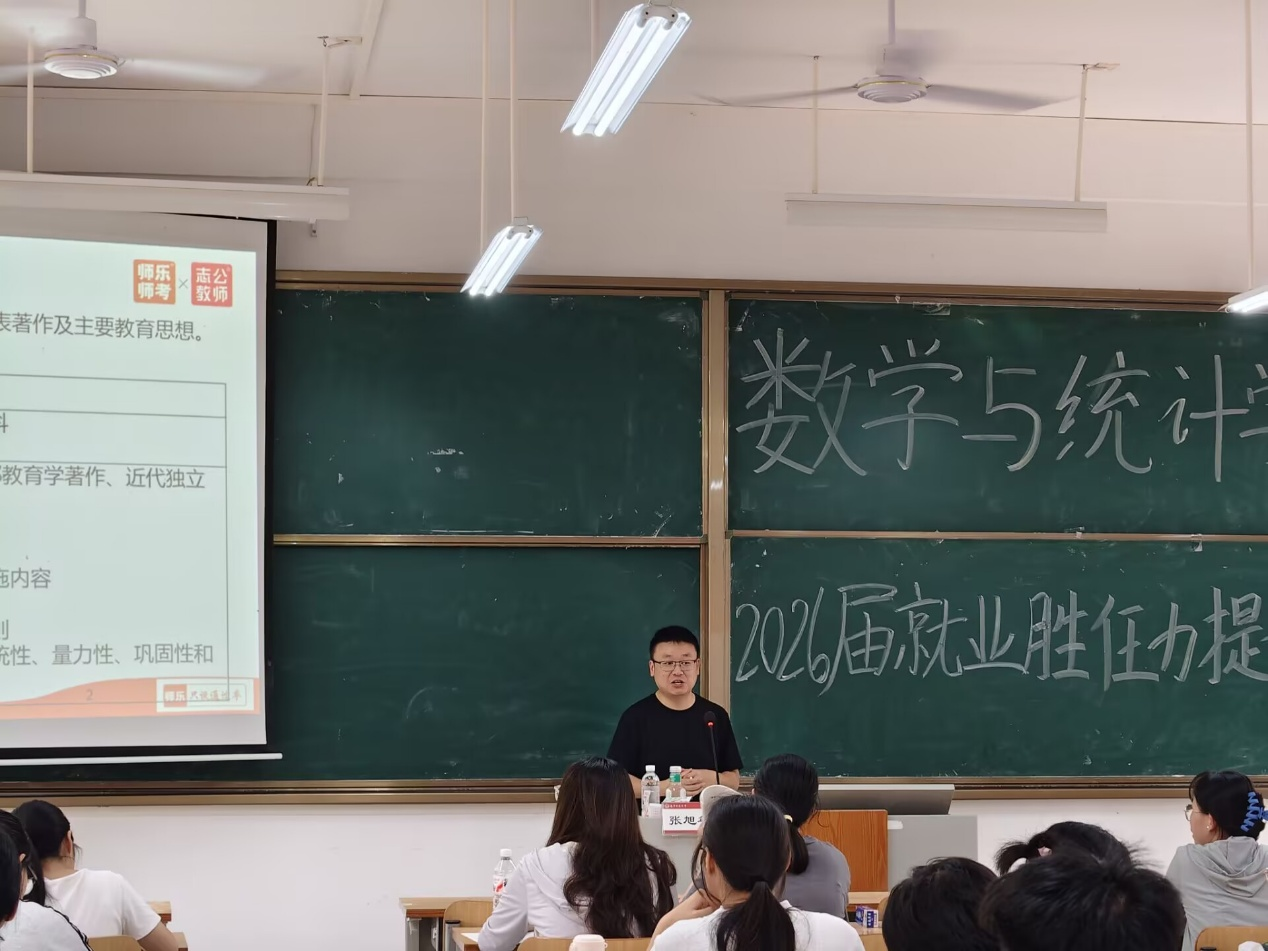 为助力2026届毕业生夯实备考基础,切实提升应试能力,4月14日、16日,数学与统计学院分别举办两场教师招聘专项讲座,特邀志公教育张旭年老师、数统学院赵飞老师主讲,精准对接学子需求,为毕业生备考保驾护航,助力学子实现就业目标。