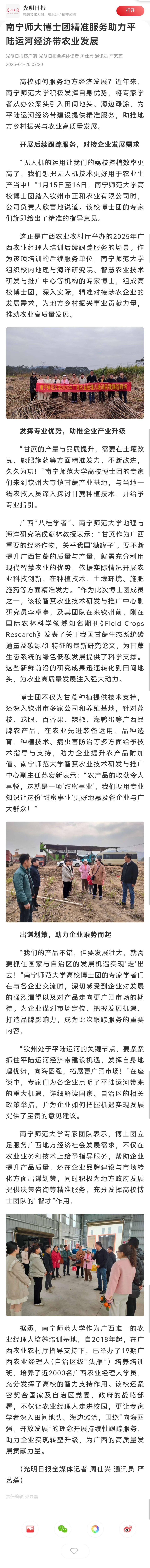 【光明日报客户端】南宁师大博士团精准服务助力平陆运河经济带农业发展