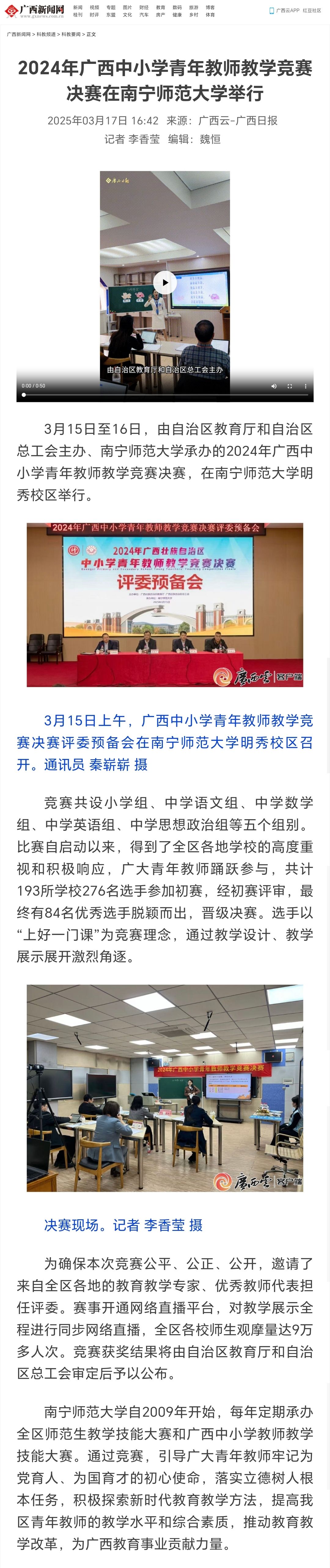 【广西新闻网】2024年广西中小学青年教师教学竞赛决赛在KY开元集团官网举行