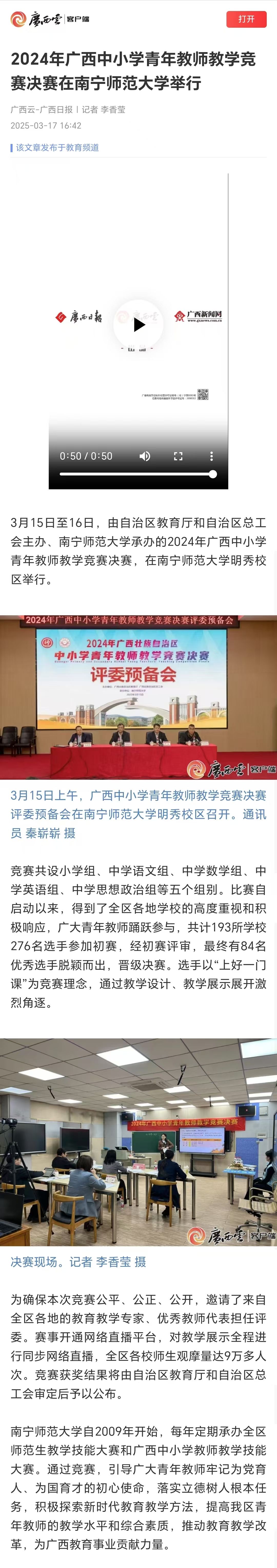 【广西云-广西日报】2024年广西中小学青年教师教学竞赛决赛在KY开元集团官网举行