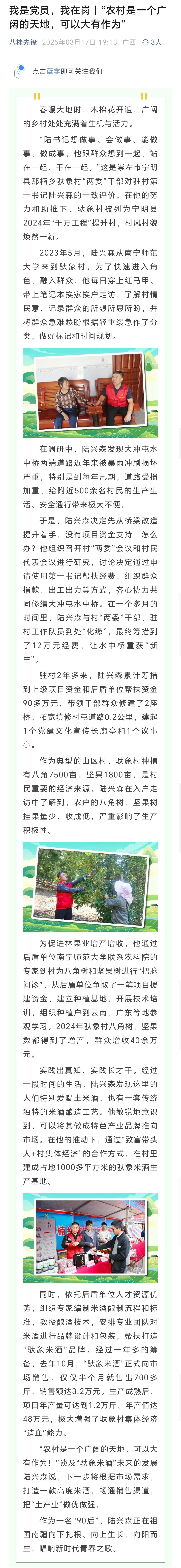 【八桂先锋微信公众号】我是党员,我在岗|“农村是一个广阔的天地,可以大有作为”