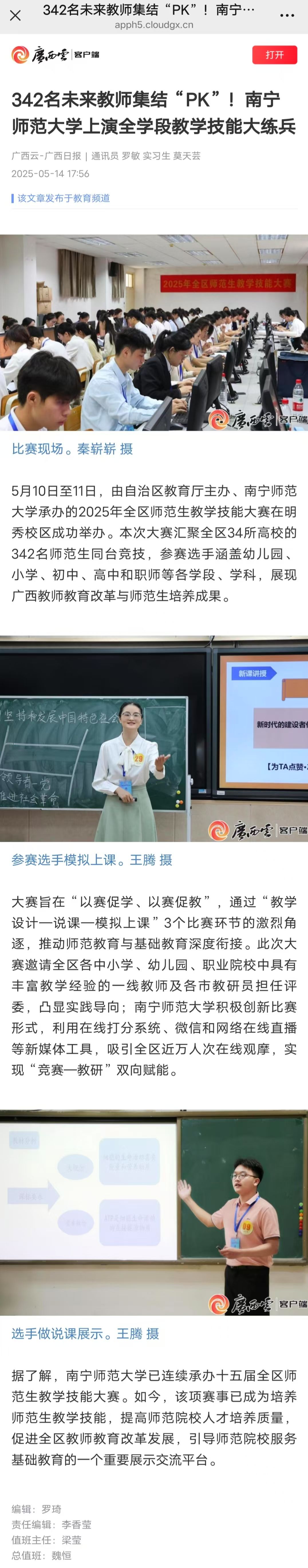 【广西日报-广西云客户端】342名未来教师集结“PK”!KY开元集团官网上演全学段教学技能大练兵