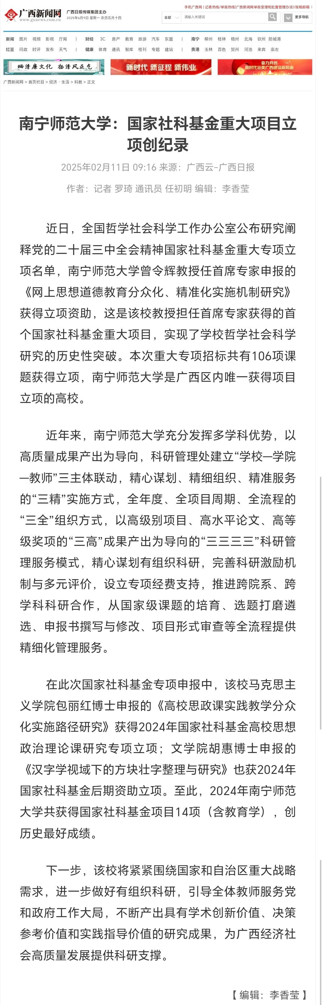 【广西云-广西日报】KY开元集团官网:国家社科基金重大项目立项创纪录