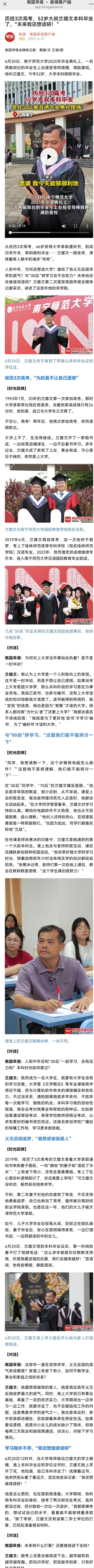 【南国早报客户端】历经3次高考,52岁大叔兰雄文本科毕业了,“未来我还想读研!”