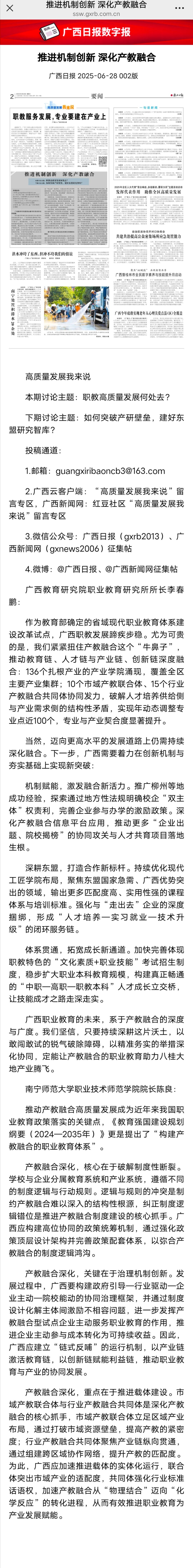 【广西日报】推进机制创新 深化产教融合