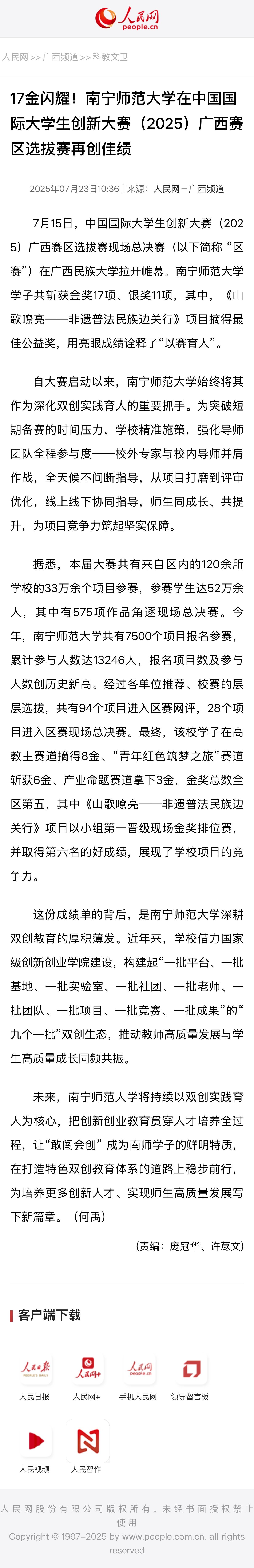 【人民网】17金闪耀!KY开元集团官网在中国国际大学生创新大赛(2025)广西赛区选拔赛再创佳绩