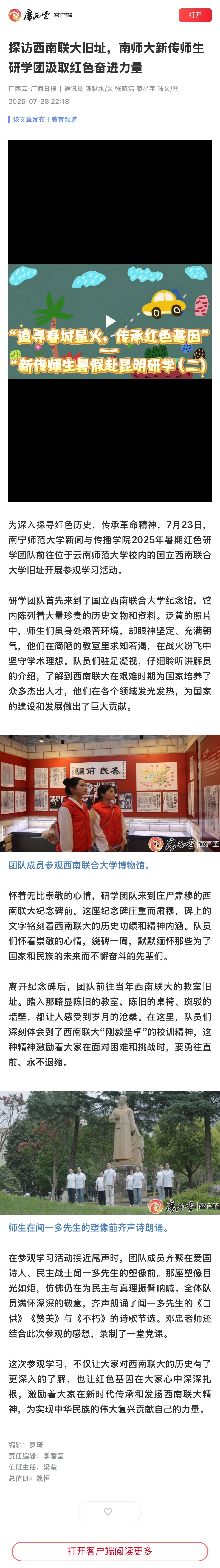 【广西日报-广西云客户端】探访西南联大旧址,南师大新传师生研学团汲取红色奋进力量