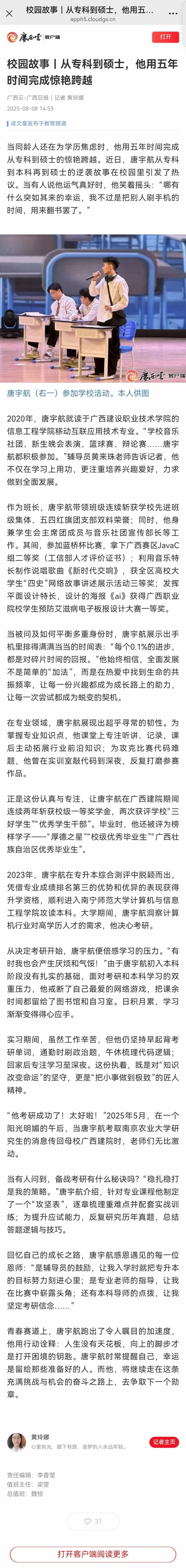 【广西云-广西日报】校园故事|从专科到硕士,他用五年时间完成惊艳跨越