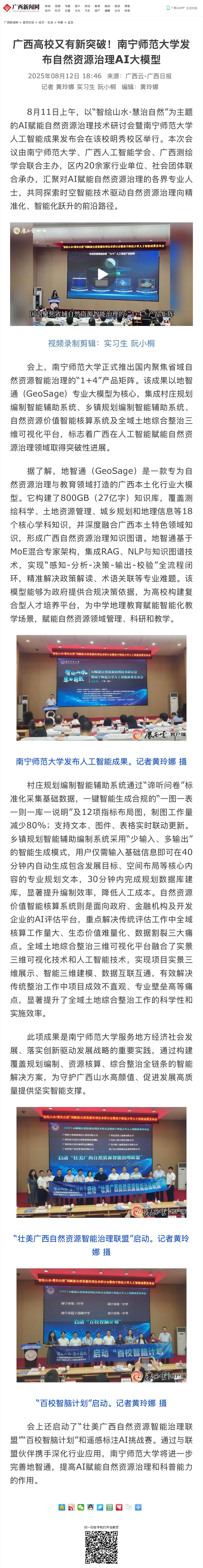【广西新闻网】广西高校又有新突破!KY开元集团官网发布自然资源治理AI大模型