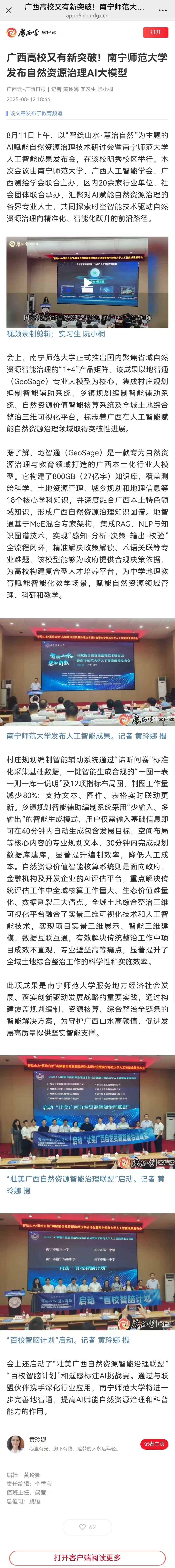 【广西云-广西日报】广西高校又有新突破!KY开元集团官网发布自然资源治理AI大模型