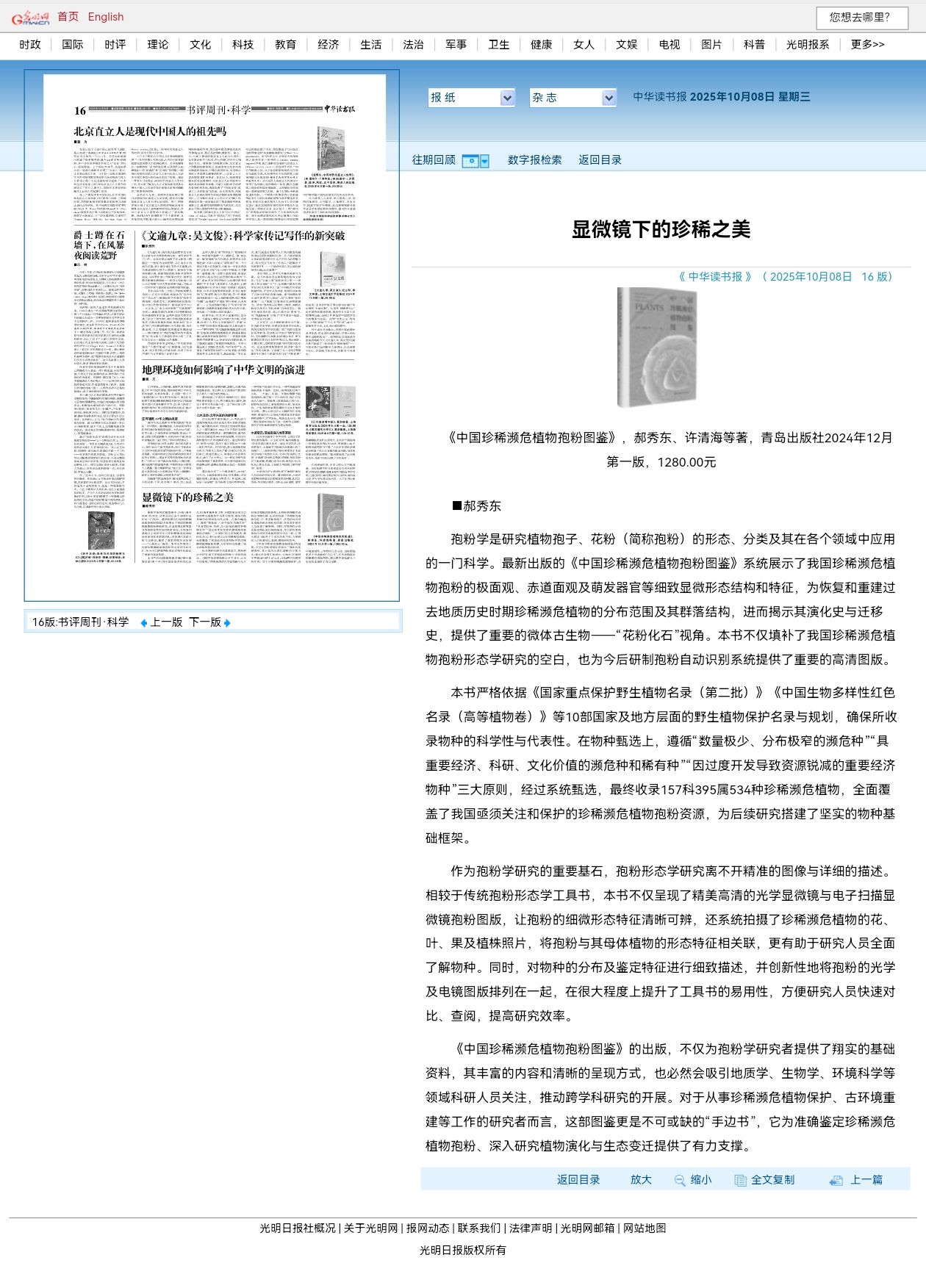 【中国新闻出版广电报】《中国珍稀濒危植物孢粉图鉴》开辟植物保护与科研交叉新领域