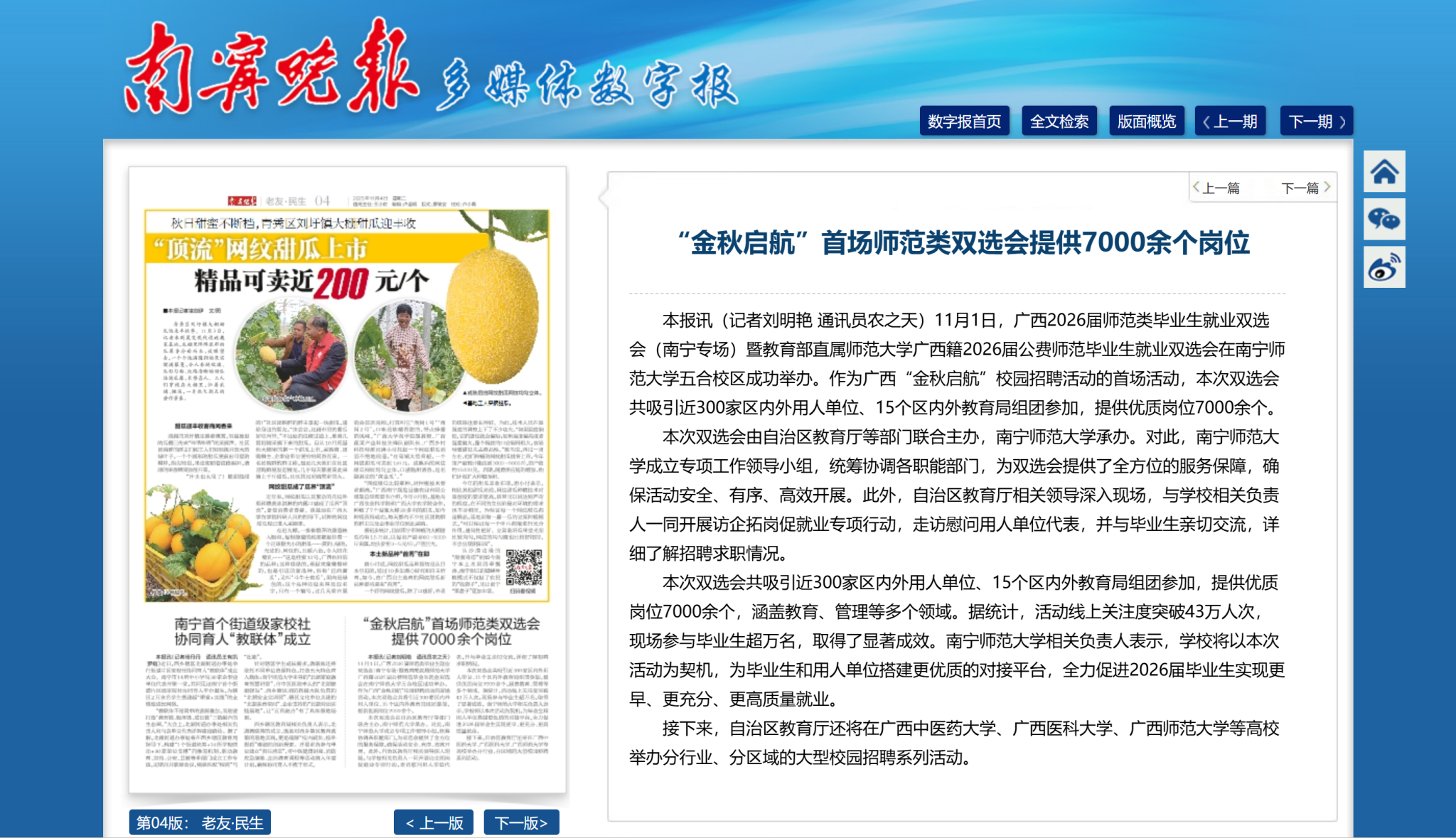 【南宁晚报】“金秋启航”首场师范类双选会提供7000余个岗位