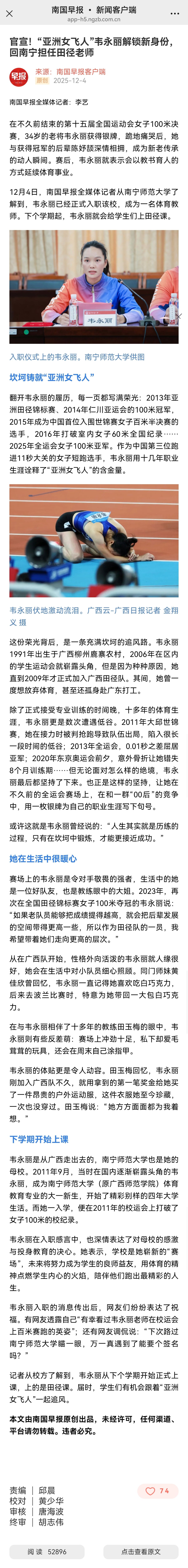 【南国早报客户端】官宣!“亚洲女飞人”韦永丽解锁新身份,回南宁担任田径老师