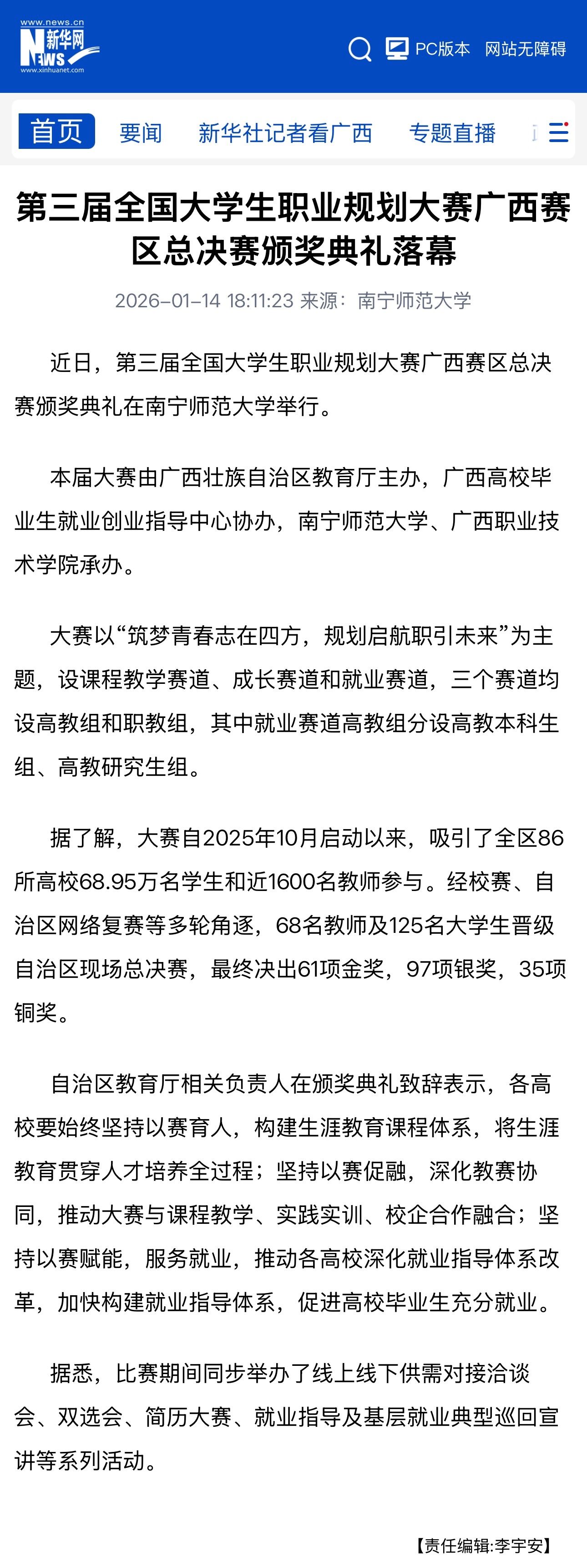 【新华网】第三届全国大学生职业规划大赛广西赛区总决赛颁奖典礼落幕