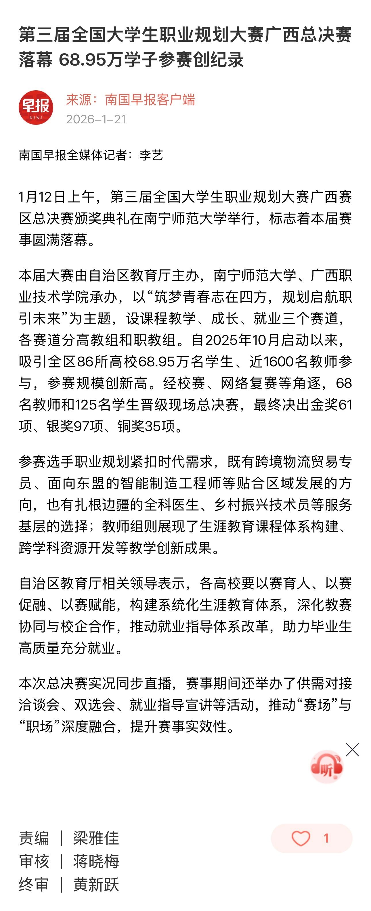 【南国早报客户端】第三届全国大学生职业规划大赛广西总决赛落幕 68.95万学子参赛创纪录