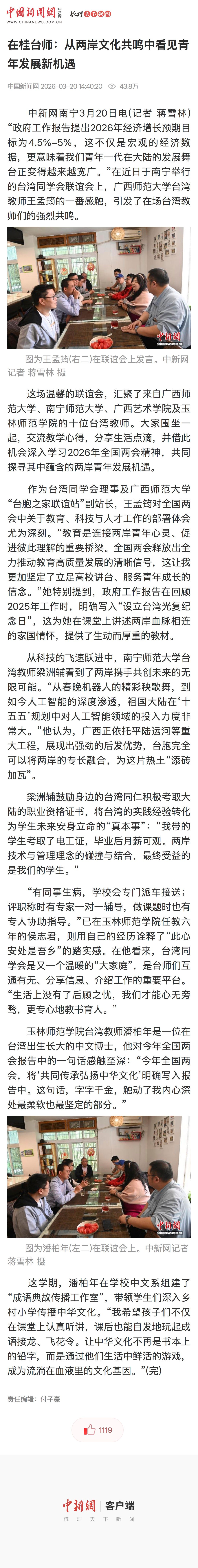 【中国新闻网】在桂台师:从两岸文化共鸣中看见青年发展新机遇