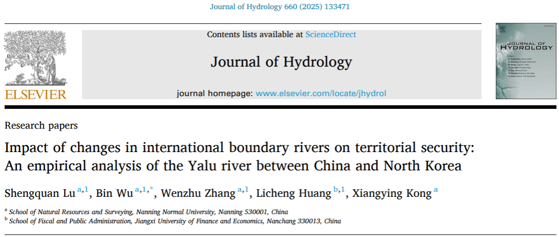 研究团队在Journal of Hydrology(中科院一区TOP,SCI-Q1)发表了题为“Impact of changes in international boundary rivers on territorial security: An empirical analysis of the Yalu River between China and North Korea”的研究论文。文章利用多源数据,重建了过去83年的中朝界河历史河道,分析了其演变模式和形态变化,并建立了界河变化评估框架,以探讨沿岸国家的国土安全风险。该文由团队吴彬副教授为通讯作者,硕士研究生卢盛权为第一作者共同完成。