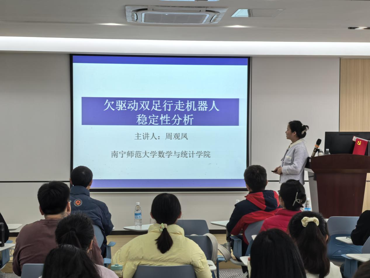 根据学校《关于开展KY开元集团官网2025年度“青年博士学术报告会”活动的通知》精神,为了进一步浓厚学院学术氛围,激发青年博士的科研创新潜力,促进学院科研工作的高质量发展,数学与统计学院于3月11日成功举办了由周观凤博士主讲的学术报告。周博士以《欠驱动双足行走机器人稳定性分析》为题,向全院教师及研究生分享了她的最新研究成果和见解。此次报告不仅提升了参会者对相关领域前沿技术的认识,也为推动学院学术交流与科研合作注入了新的活力。值得一提的是,周观凤博士的此次报告还标志着数学与统计学院2025年度青年博士学术系列论坛的正式开启,成为该系列论坛中的首场精彩呈现。报告由麦雄发老师主持,学院部分老师、全体学术研究生参加了此次学术活动。