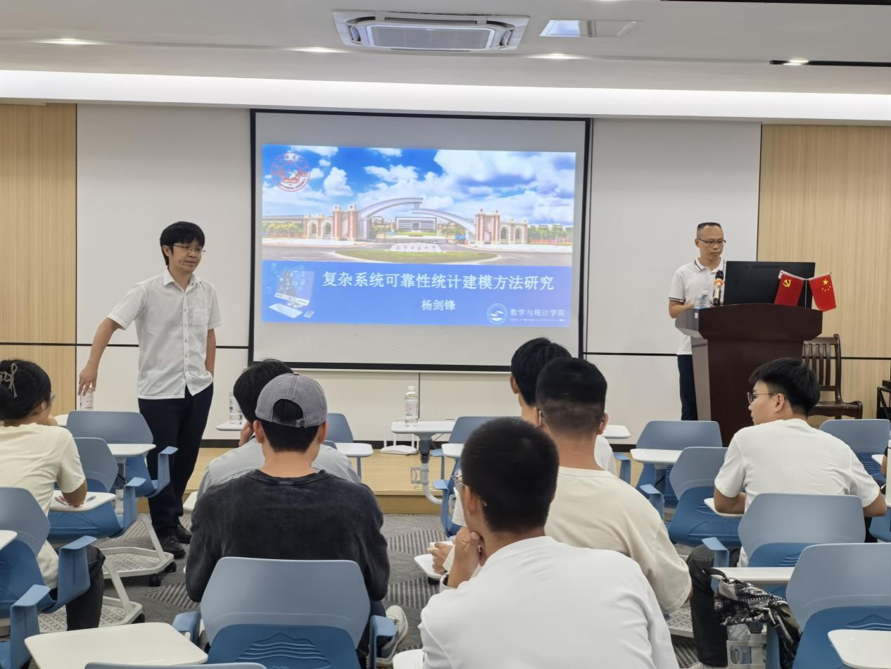 5月6日下午,数学与统计学院杨剑锋教授作《复杂系统可靠性统计建模方法研究》专题学术报告。本次学术活动由学院副院长刘利斌教授主持,学院部分老师及全体学硕研究生参加了此次学术活动。