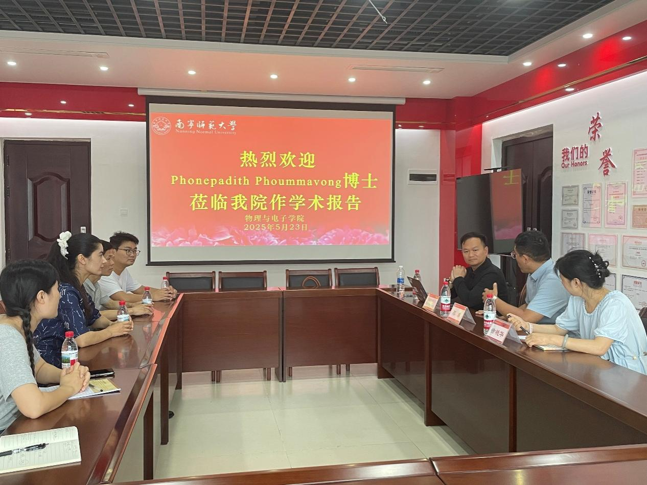 为了推动学院与东盟国家在人工智能领域的科技创新合作,促进联合实验室的筹建,2025年5月23日下午,物理与电子学院特邀老挝国立大学Phonepadith Phoummavong博士作专题学术报告。报告会由陈东副院长(主持行政工作)主持。