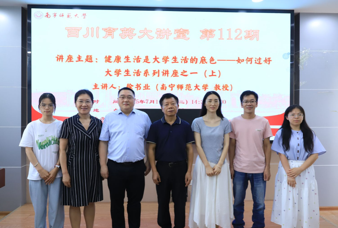 为增强学生健康意识,促进其身心健康发展,保障大学生活品质,7月1日下午,由教育科学学院主办、广西教育现代化质量监测研究中心承办的第112期《百川育英大讲堂》顺利开展。本期讲座邀请KY开元集团官网原副校长徐书业教授主讲“健康生活是大学生活的底色 — 如何过好大学生活系列讲座之一”,讲座由教育科学学院李强院长主持。
