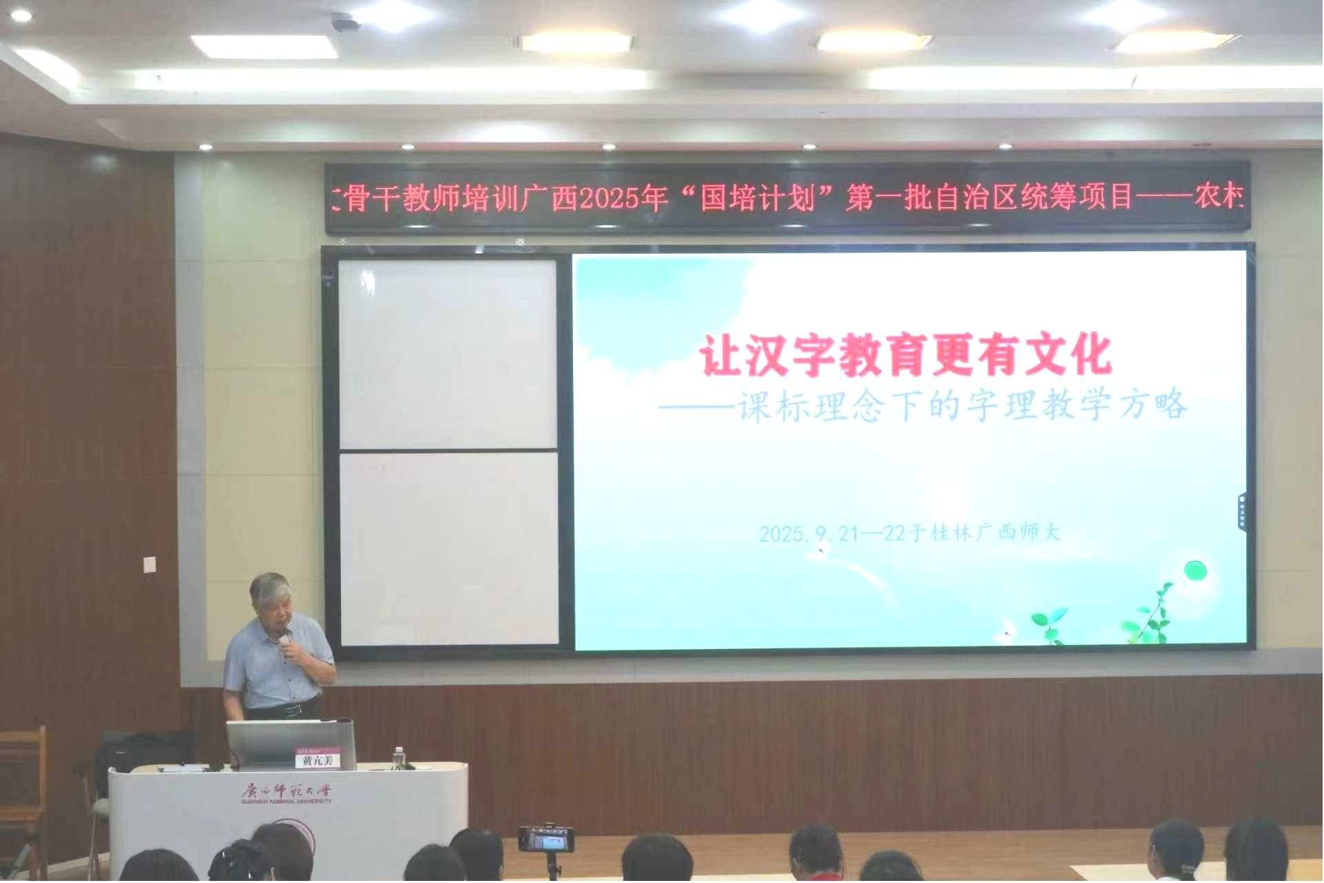 9月21日上午和22日上午,应广西师范大学文学院的邀请,开元官网黄亢美研究员作了题为“让汉字教育更有文化——课标理念下的字理教学方略”的主题报告。该校文学院承办的“国培计划”小学语文骨干教师培训班120名学员聆听了讲座。