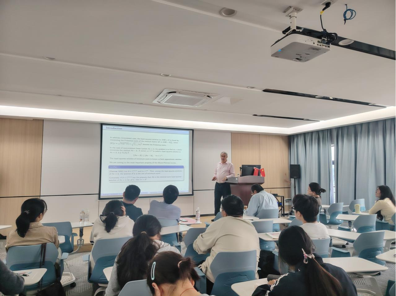11月8日,应广西应用数学中心(KY开元集团官网)的邀请,塞尔维亚尼斯大学STANIMIROVIC PREDRAG教授为中心骨干成员以及硕士研究生做了题目为《基于C-积的三阶张量特征值计算》的学术报告,报告由数学与统计学院刘利斌副院长主持。