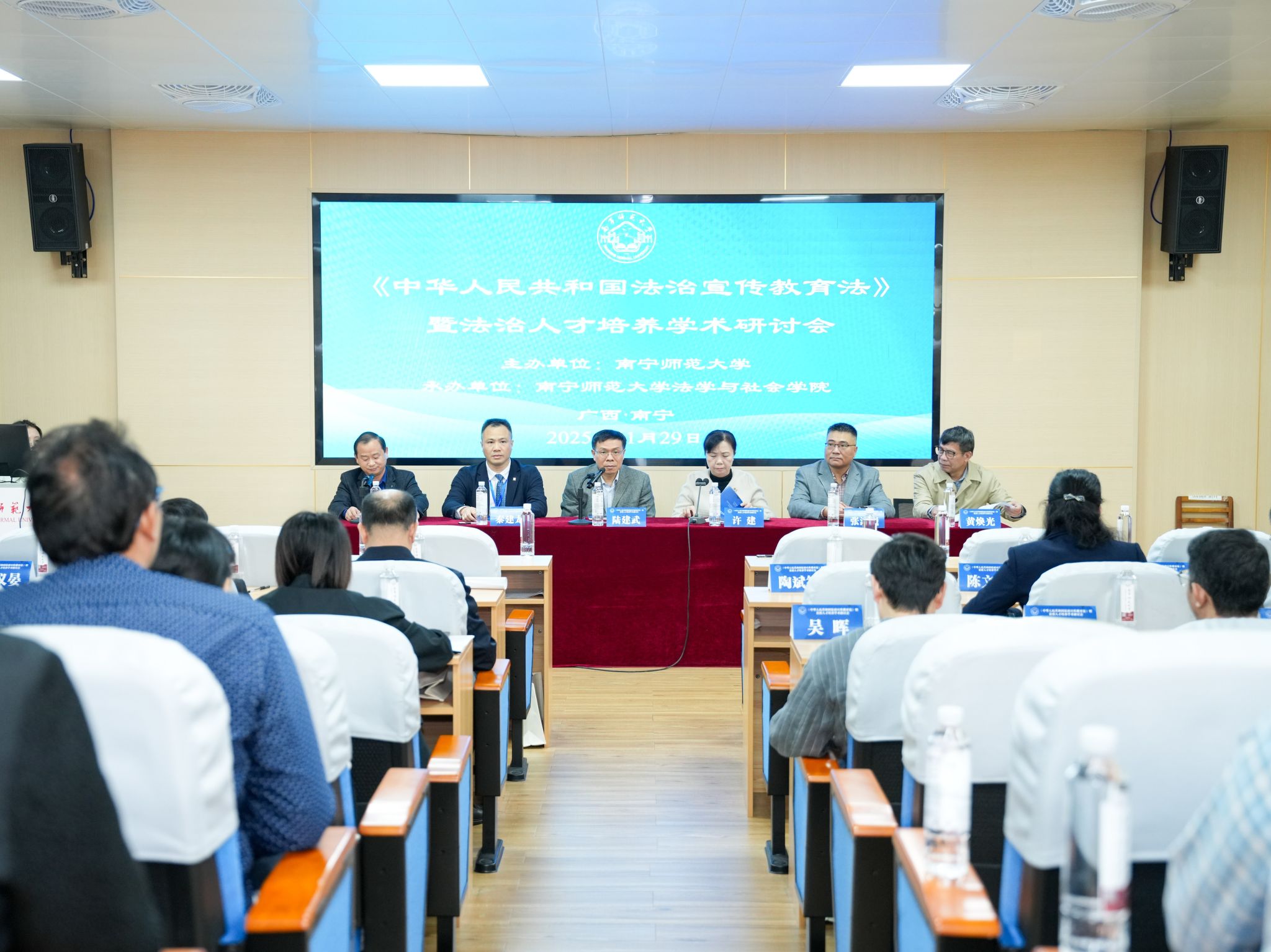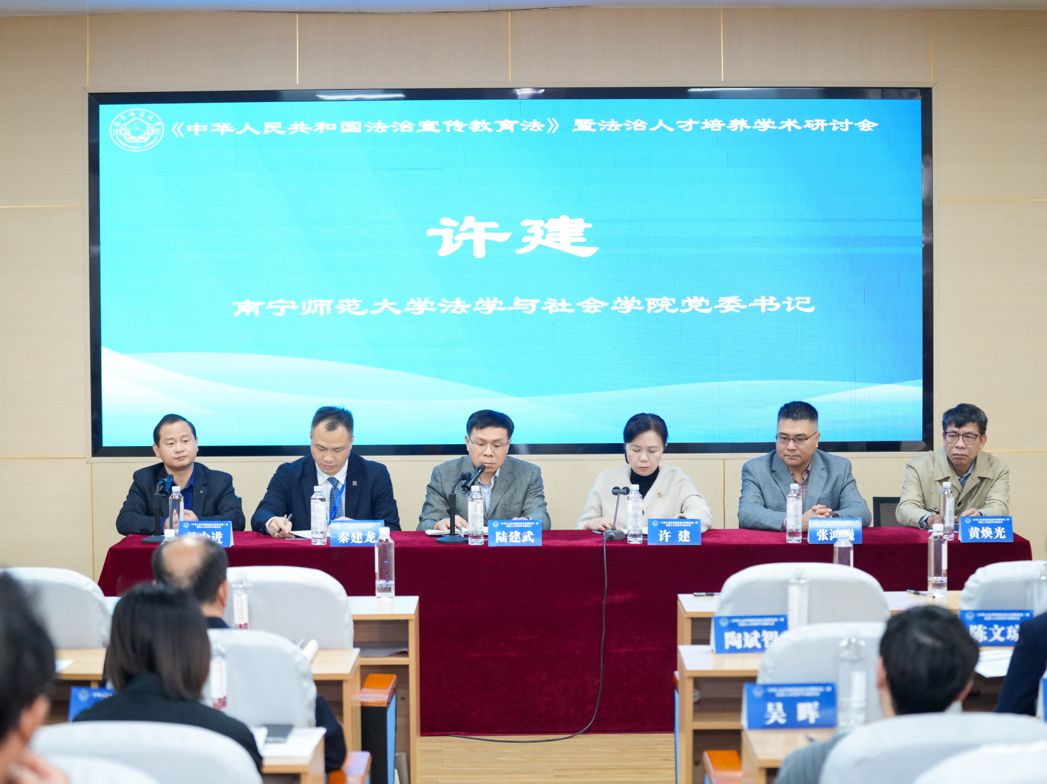 开幕式由法学与社会学院副院长(主持工作)吴少进教授主持。法学与社会学院党委书记许建代表主办单位致开幕辞。她指出,本次研讨会是推动法治宣传教育法落地实施、服务地方法治建设的重要平台。自治区司法厅离退休人员工作处处长陆建武在致辞中充分肯定了KY开元集团官网在法治研究与社会服务方面取得的成效,希望与会代表深入交流,为推进法治广西建设建言献策。
