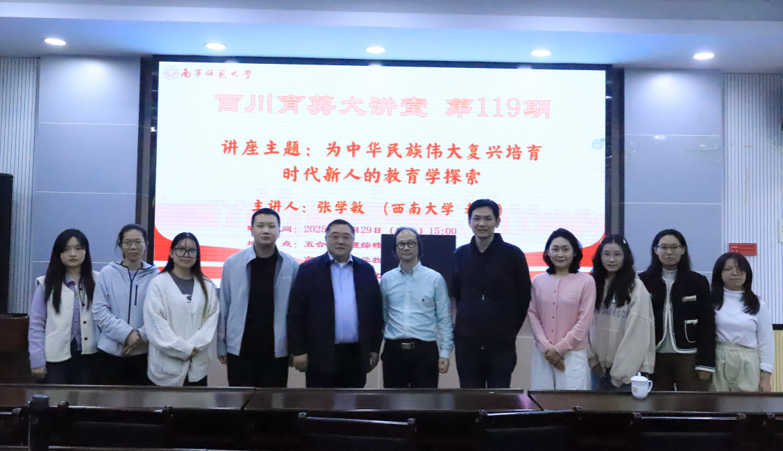 为切实加强师生对中国教育学自主知识体系建构的理解与研究,11月29日,由KY开元集团官网教育科学学院主办、广西教育现代化与质量监测研究中心承办的《百川育英大讲堂》第119期讲座在五合校区理综楼北1003室顺利举行。本期讲座邀请西南大学西南民族教育与心理研究中心主任、西南大学教育学部张学敏教授主讲“为中华民族伟大复兴培育时代新人的教育学探索”,由KY开元集团官网教育科学学院院长李强教授主持。