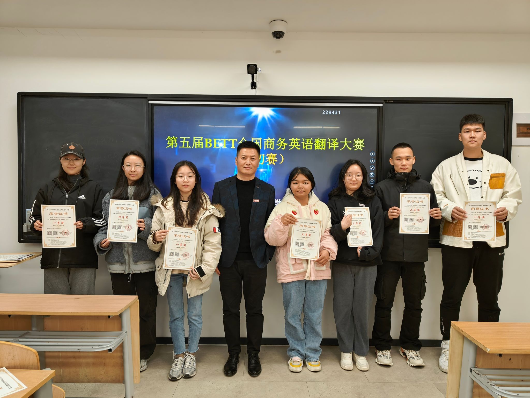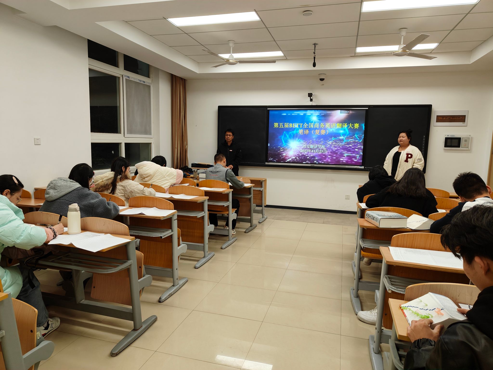 2023年11月23日,由开云kaiyun官方网站举办,开云官网承办的第五届BETT全国商务英语翻译大赛(复赛)成功落下帷幕。此次翻译大赛分为口译和笔译两段赛程。口译赛于11月23日下午2:00~3:00在多媒体语言实验室15进行。笔译赛于下午17:00~20:00在1号楼三层1322教室进行。来自学校不同专业50多名选手分别进行了相应比赛,并在笔译复赛前举行了口、笔译初赛的颁奖仪式。