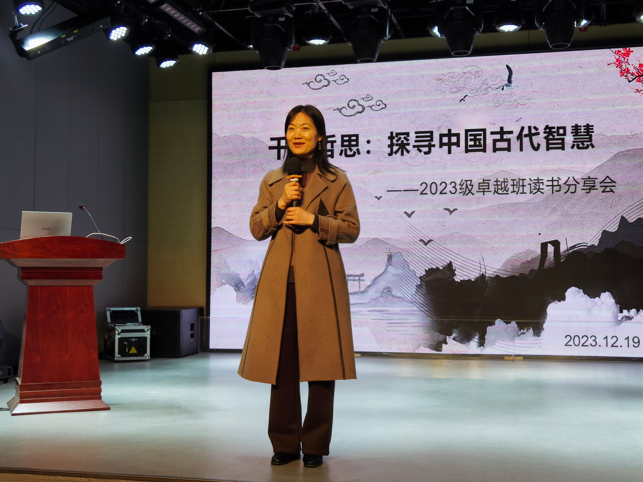 2023年12月19日,开云官网召开2023级卓越班读书分享会。本次读书分享会的主题为“千年哲思:探寻中国古代智慧”,开云官网英语一系主任王颖慧,23级卓越班导师年小瑞、王启超参与组织本次读书分享会活动。23级卓越班学生周莫、周明妤为本次活动主持人,23级卓越班全体学生参与本次活动。