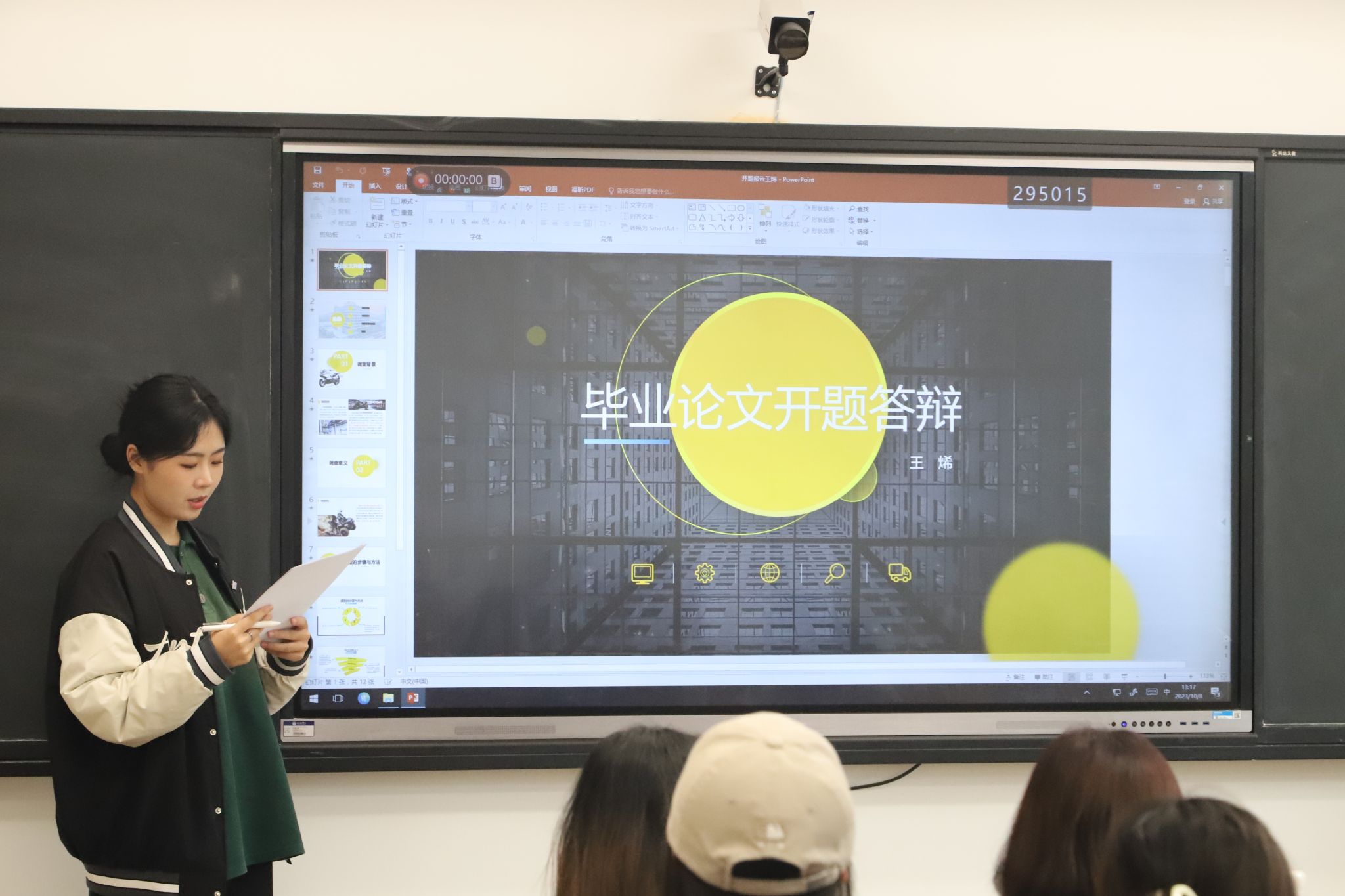 本次开题答辩分为学生汇报、教师提问、学生回答和意见指导四个环节。每位答辩学生从选题意义、主要研究内容、论文提纲和时间规划等方面对选题进行阐述,答辩组老师根据答辩内容考查了学生从选题后的准备工作是否充分,帮助学生找出论文框架上存在的问题,有针对性地提出指导意见。