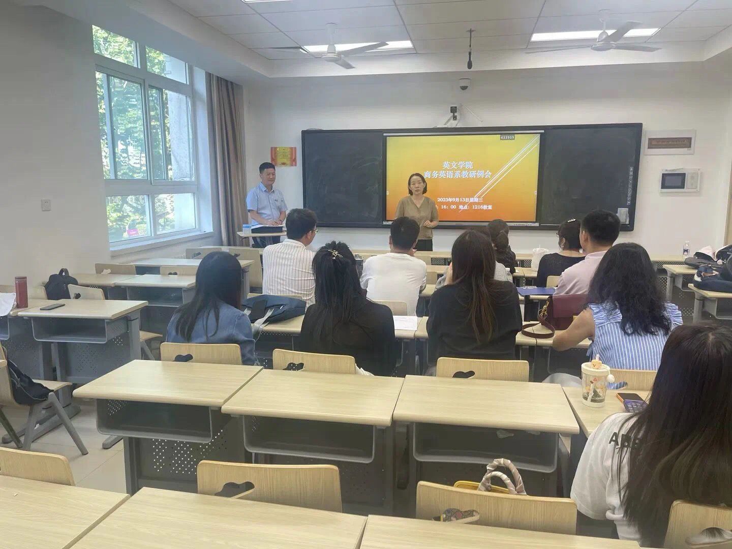 9月13日下午,商务英语系开展了本学期第二次教学例会。本次教学例会的主题是“《习近平谈治国理政》融入外语课程教学及人才培养”,会议由商务英语系副主任魏征主持。开云官网院长袁小陆,教学副院长李燕以及商务英语系全体教师参加了本次会议。