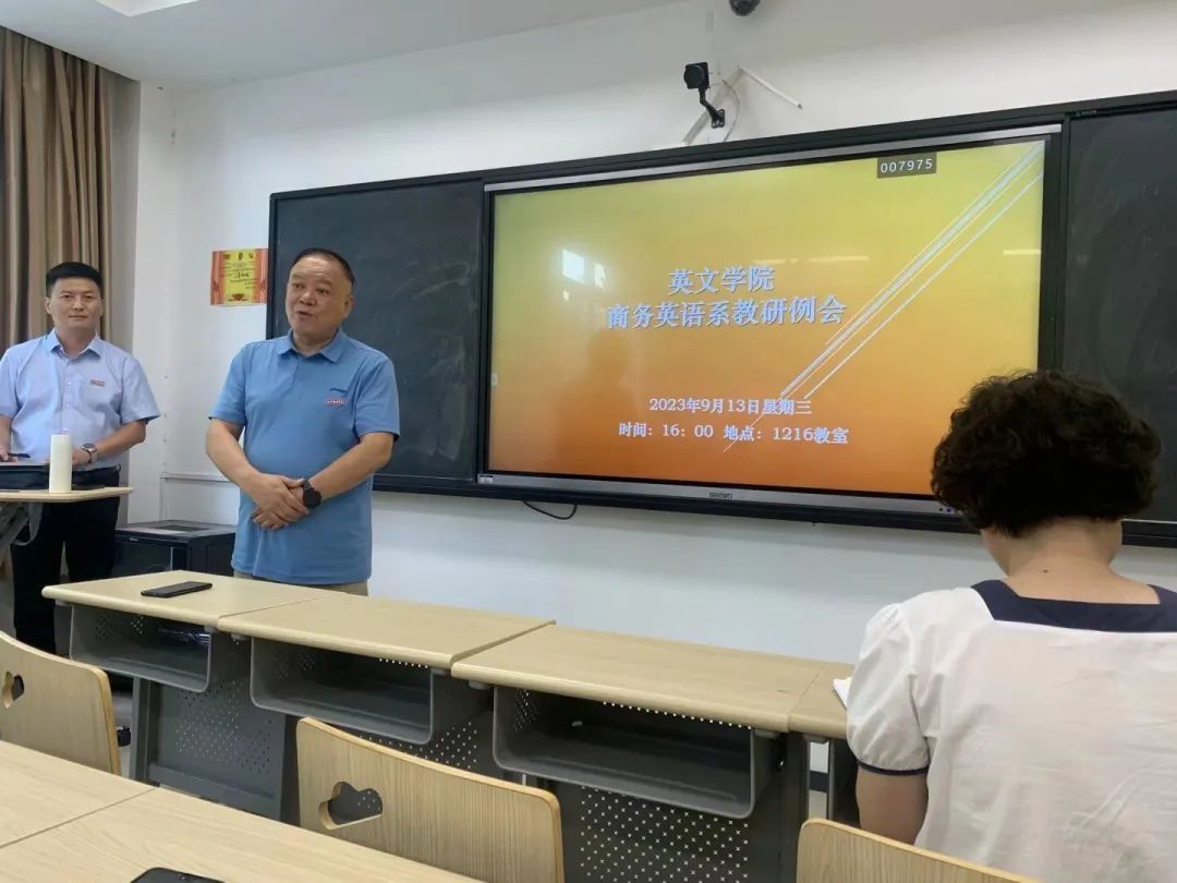 最后,由魏征副主任做本次教研会总结。魏主任说到,这是一次富有成效的教研会议,各位领导和老师就专业发展、教学改革、人才培养等方面进行了深入探讨和交流。同时,“三进”工作作为本次会议的重要议题之一,也得到了广泛关注和支持。下一步,商务英语系将继续推进各项工作的开展,努力为学院的发展和人才培养做出更大的贡献。
