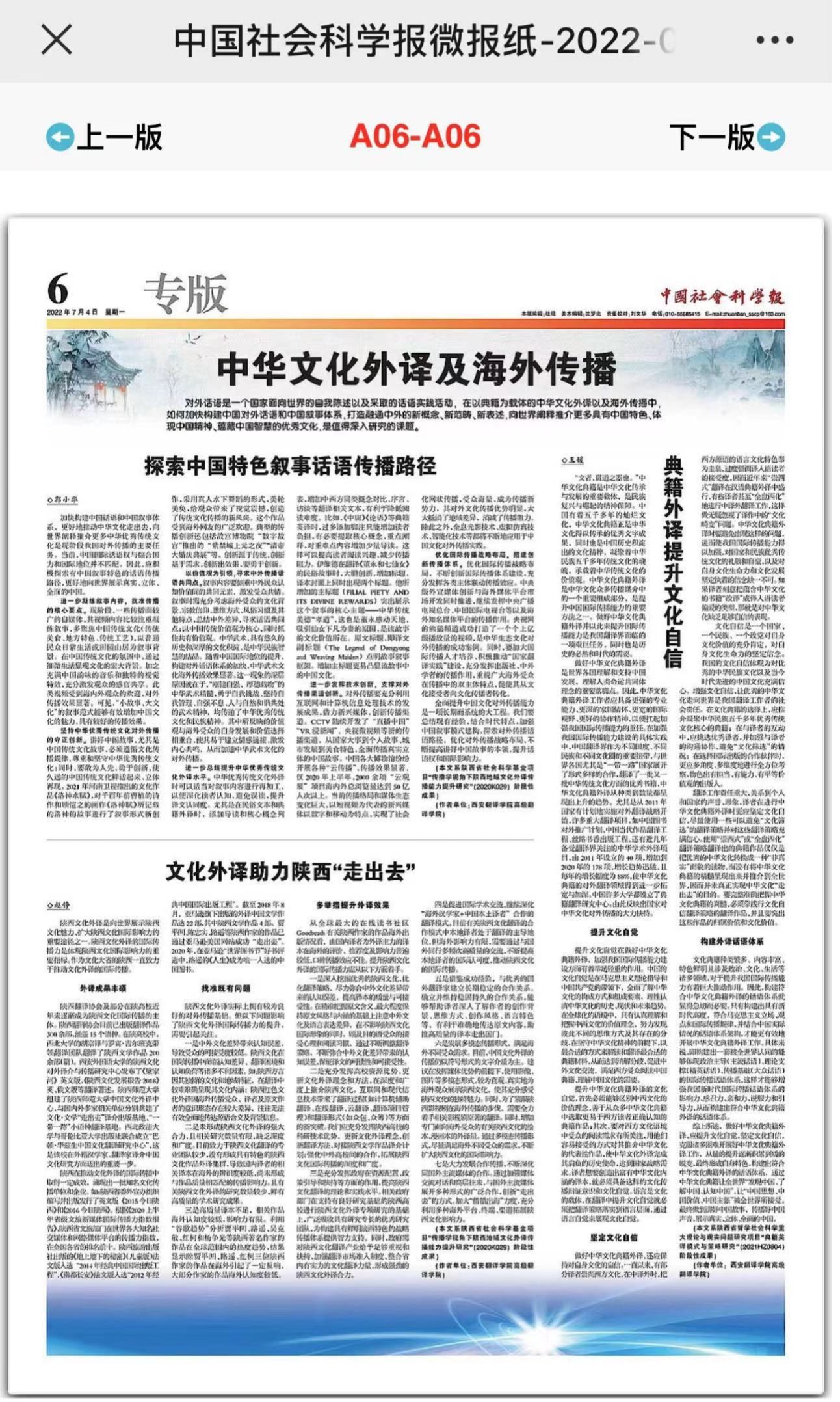 中国社会科学报于7月4日刊登开云kaiyun官方网站教师学术成果三篇,这是我院教师首次在国家级权威报刊以专版的形式发刊,对于激发我院教师科研热情、提高我院科研层次、助力陕西地域文化的传播产生了积极的影响。