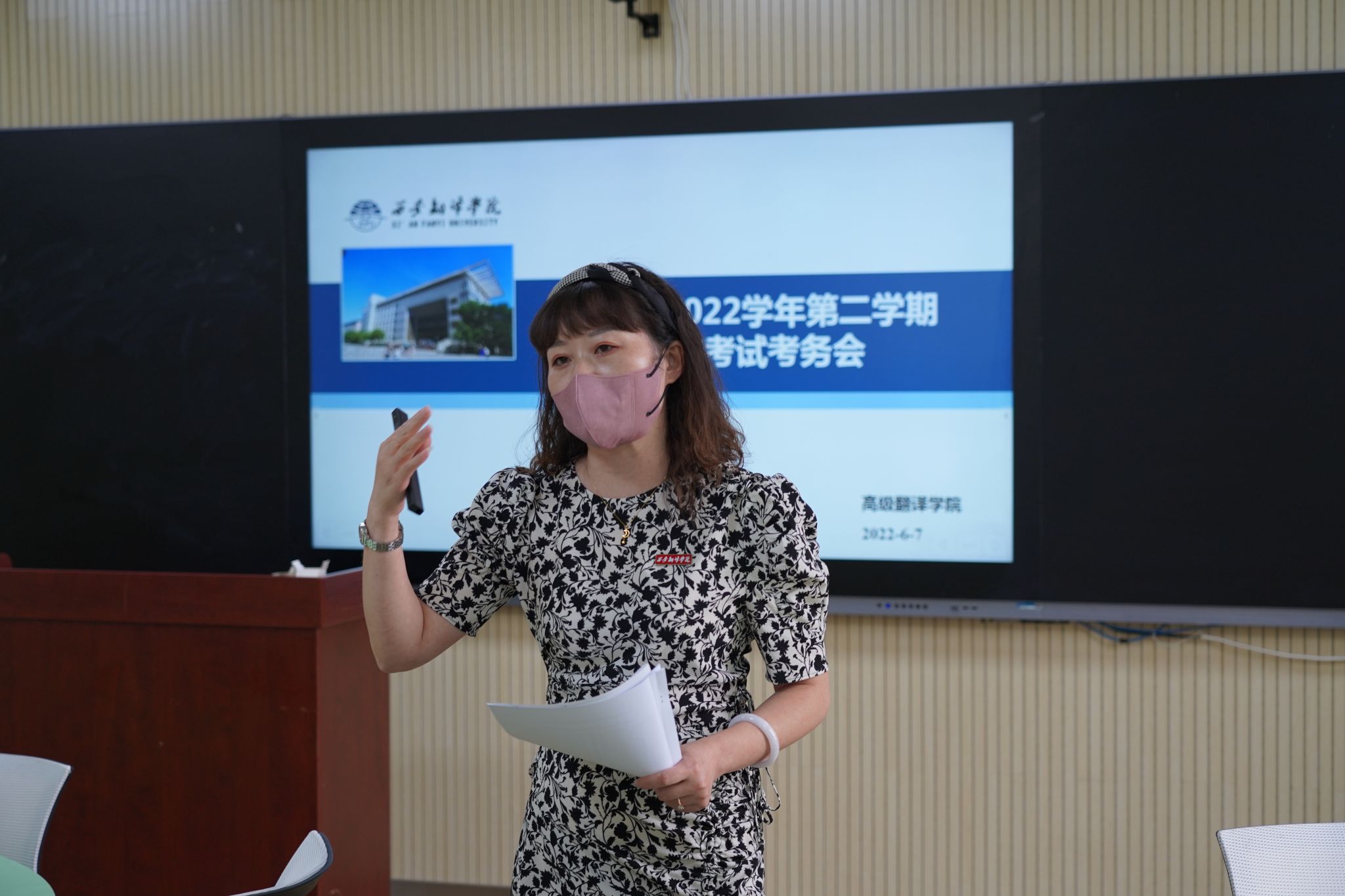 就期末考试,她指出,我校将迎接本科教学水平审核评估及学院迎接国家级一流专业审核评估,期末考试要在考务管理、命题、阅卷、成绩登记、试卷分析等环节上做到高标准严要求,最后,她强调,不论教学还是考试,参与其中都是对我们能力的一种提升,是自我价值的实现过程,希望大家以高度负责的精神,全力做好本次四六级考试工作和期末考试工作。