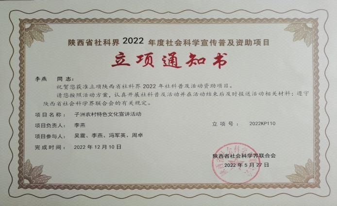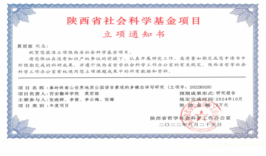 2022年度陕西省社科基金项目(1项),主持人:莫丽娅