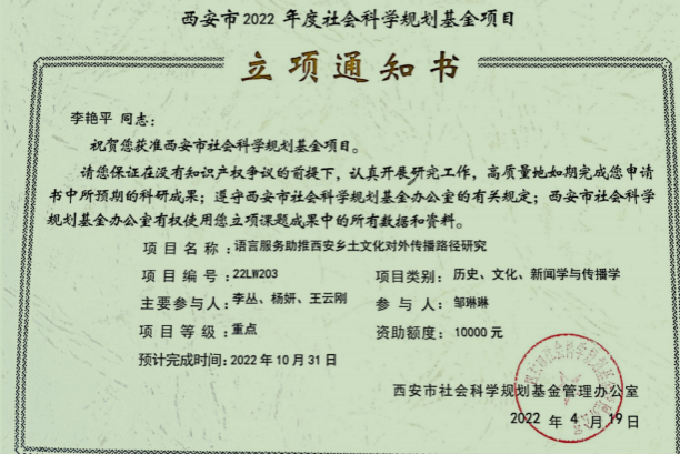 2022年西安市社科规划基金课题申报立项情况(5项)