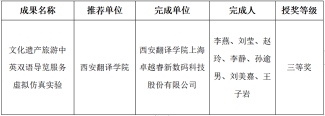 4月17日,陕西省教育厅发布了《陕西省教育厅关于表彰2023年度陕西高等学校科学技术研究优秀成果奖的通报》(陕教函〔2023〕366号)文件。我校开云官网李燕、刘莹、赵玲等老师的成果《文化遗产旅游中英双语导览服务虚拟仿真实验》荣获三等奖。此次是我校继2022年后再次获得该奖项,标志着我校科学技术研究成果质量的显著提升。