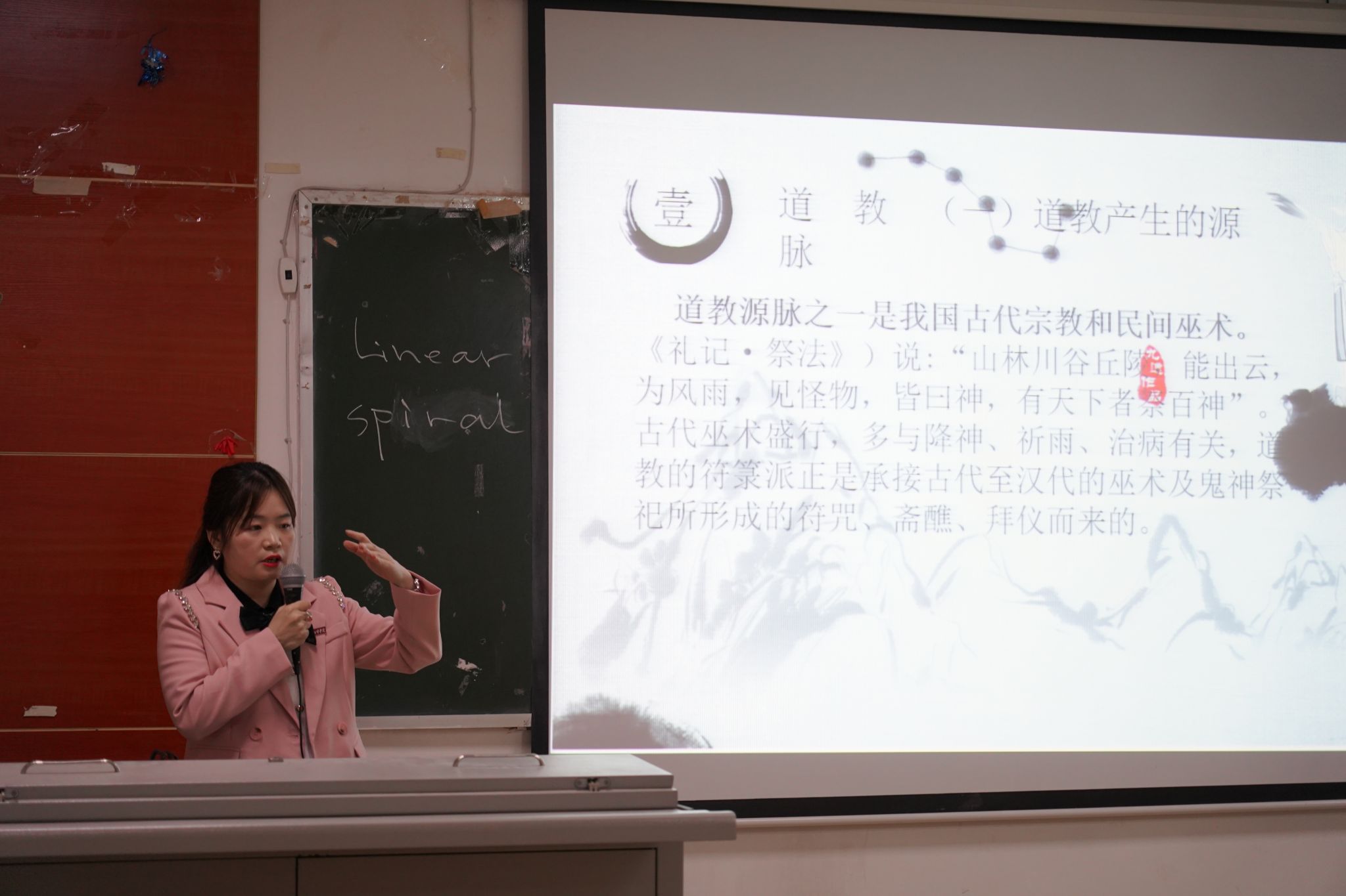 终南山钟灵毓秀,终南文化呈现出典型的多样性和丰富性,以及兼容并包的兼容性。杭洁副教授从道教、佛教和大秦景教三个方面介绍了终南山文化。首先,关于道教文化,杭洁副教授梳理了道教产生的源脉以及道教的主要流派。此外,杭洁副教授介绍了终南的译经事业,提到鸠摩罗什则在终南山脚下的大寺组成了有史以来中国最大的佛教译场,也是中国第一个国立译场,翻译出《金刚经》《法华经》等大量佛教经典,同时介绍了终南山的高僧和终南茅蓬文化。最后,杭洁副教授向在座师生讲述了大秦景教的内涵。