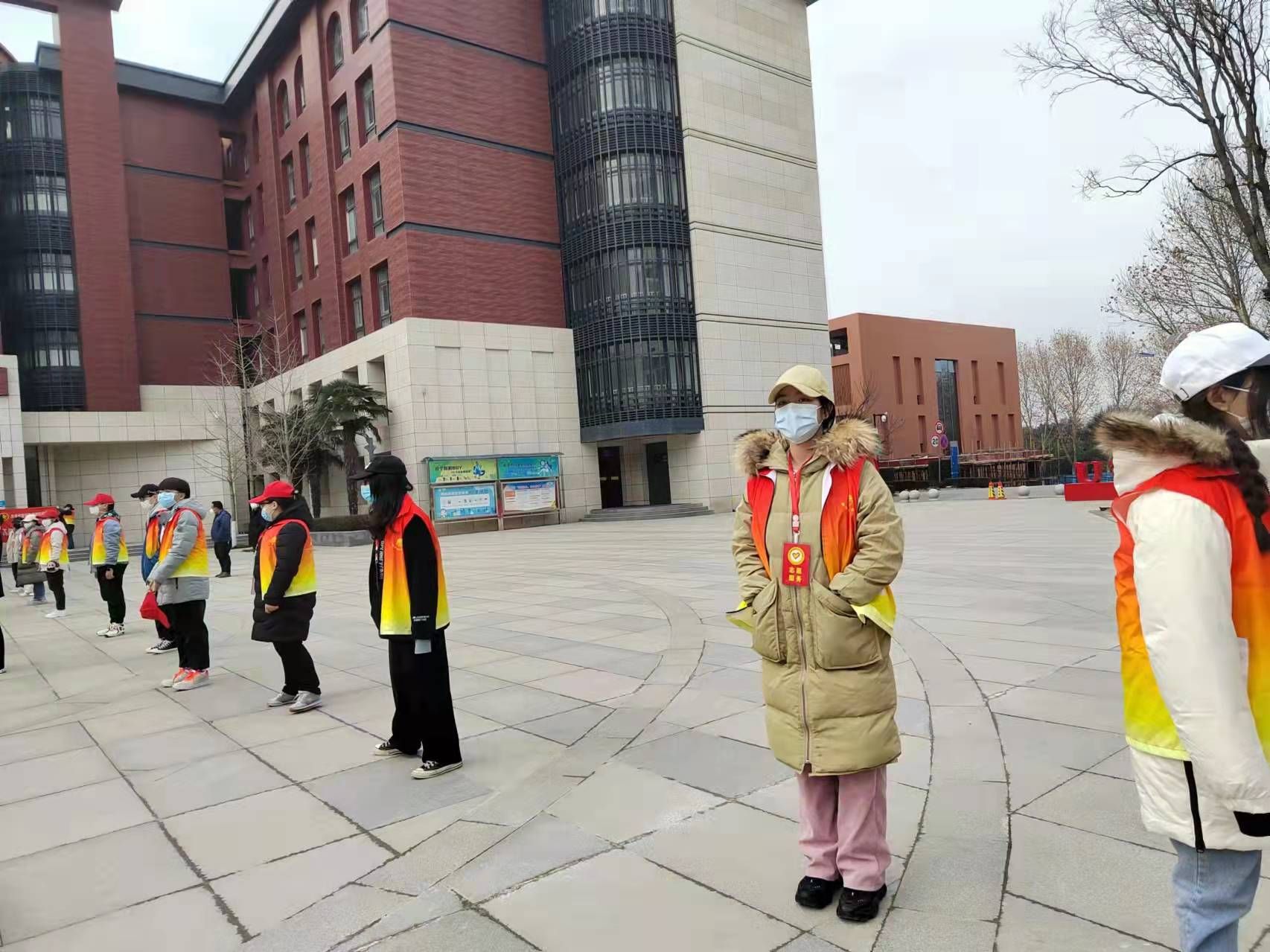 下午,志愿者们整装待发,在老师的带领下来到5号楼广场,迎接他们的是来自西区八个公寓楼学生们的核酸检测秩序维护任务。西安12月的风刺骨,但吹不冷志愿者们一心为学生们服务的沸血。