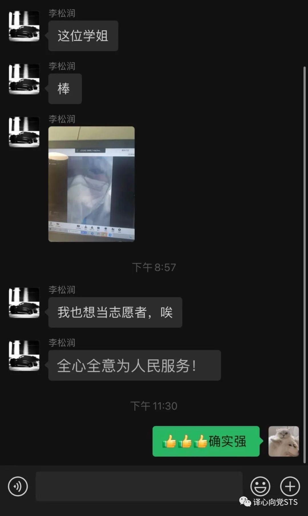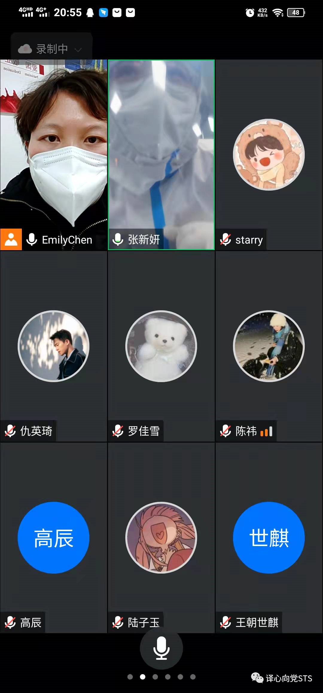有这样一位同志,在我们会议开始时一直联系不上,到会议快要结束时,终于联系上了她。此时,会议一下子安静了下来,大家表面上平静不已,但内心却心潮澎湃!原来视频那头的18级学姐张新妍正身穿着防护服,全副武装的战斗在抗疫一线。虽然身在前线,但学姐仍觉得自己做的还不够好,做的还不够多。这才是作为一名合格党员的思想觉悟,不仅以身作则还任劳任怨,值得我们所有人学习和敬佩!