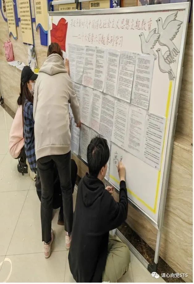 第三党小组《二十大党章600题》系列学习中,采取学习回顾与内容预习以及同学交流分享方式。