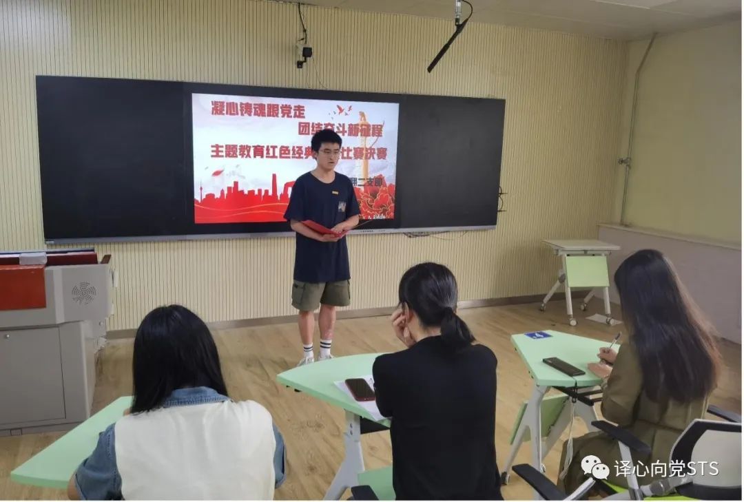 本次活动由高翻二支部统一安排,在支部书记魏婧老师的精心筹划下,在同学们的认真努力下,各位同学的经典红色诵读节目新鲜出炉。经过前期三个党小组的初赛,共有10名选手最终进入今天的决赛阶段。在整个比赛环节一组组经典诗文在同学们的深情诵读中不绝于耳,一个个经典诵读节目在同学们的精彩演绎下熠熠生辉!最终评选出一等奖一名,二等奖两名,三等奖三名。