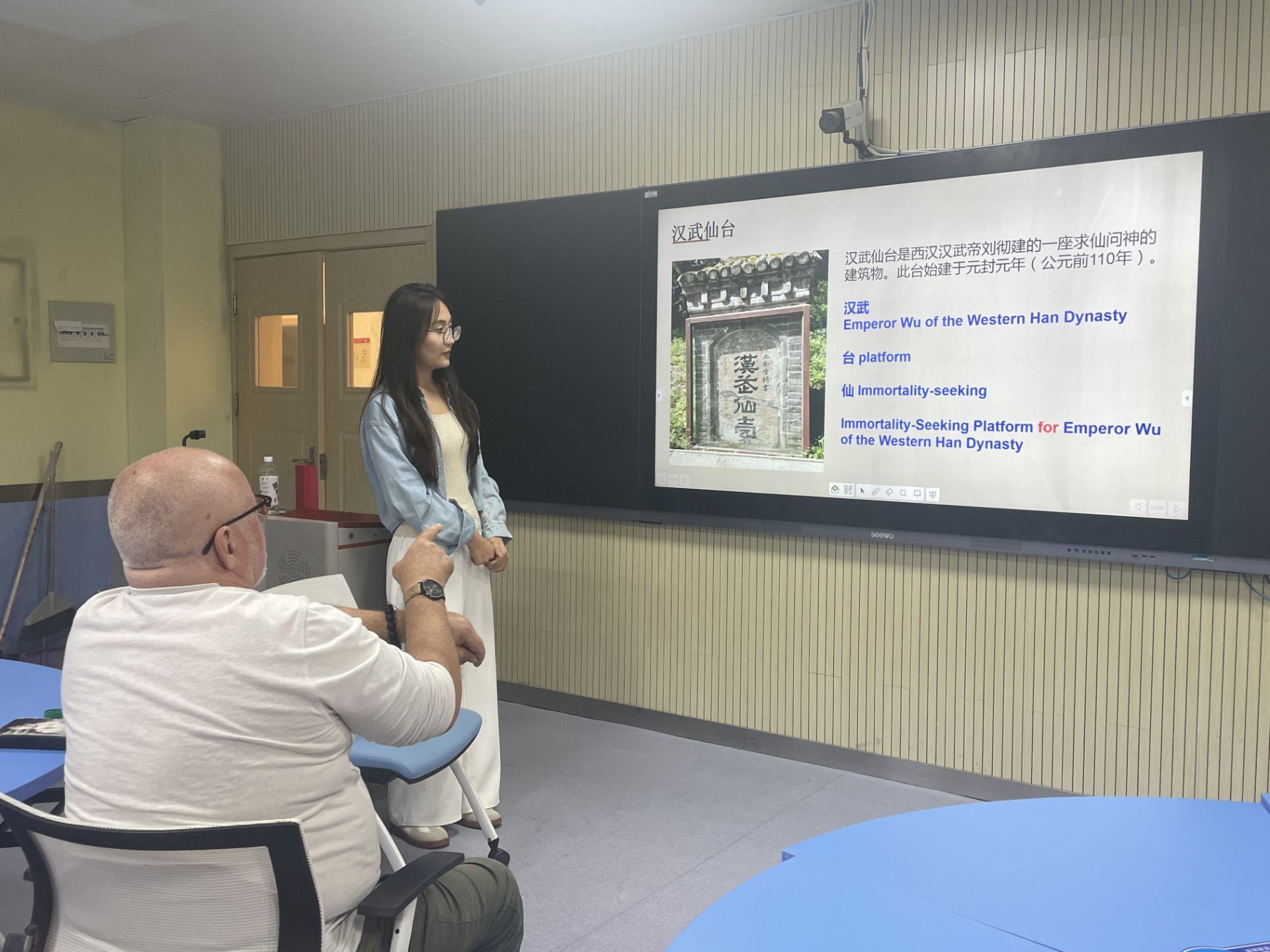 指导过程中,蒲华杰先生强调了黄帝陵作为中华民族重要历史遗迹的独特地位,以及翻译工作在挖掘其历史文化内涵中的重要性。他提出,翻译不仅要准确无误地传达基本信息,更要让目标读者能够感受到黄帝陵所承载的深厚文化底蕴。这一观点得到了师生们的广泛认同,并引发了深入的讨论。他鼓励同学们要不断拓宽自己的知识面,深入了解不同文化的背景和内涵,以便更好地进行翻译工作。