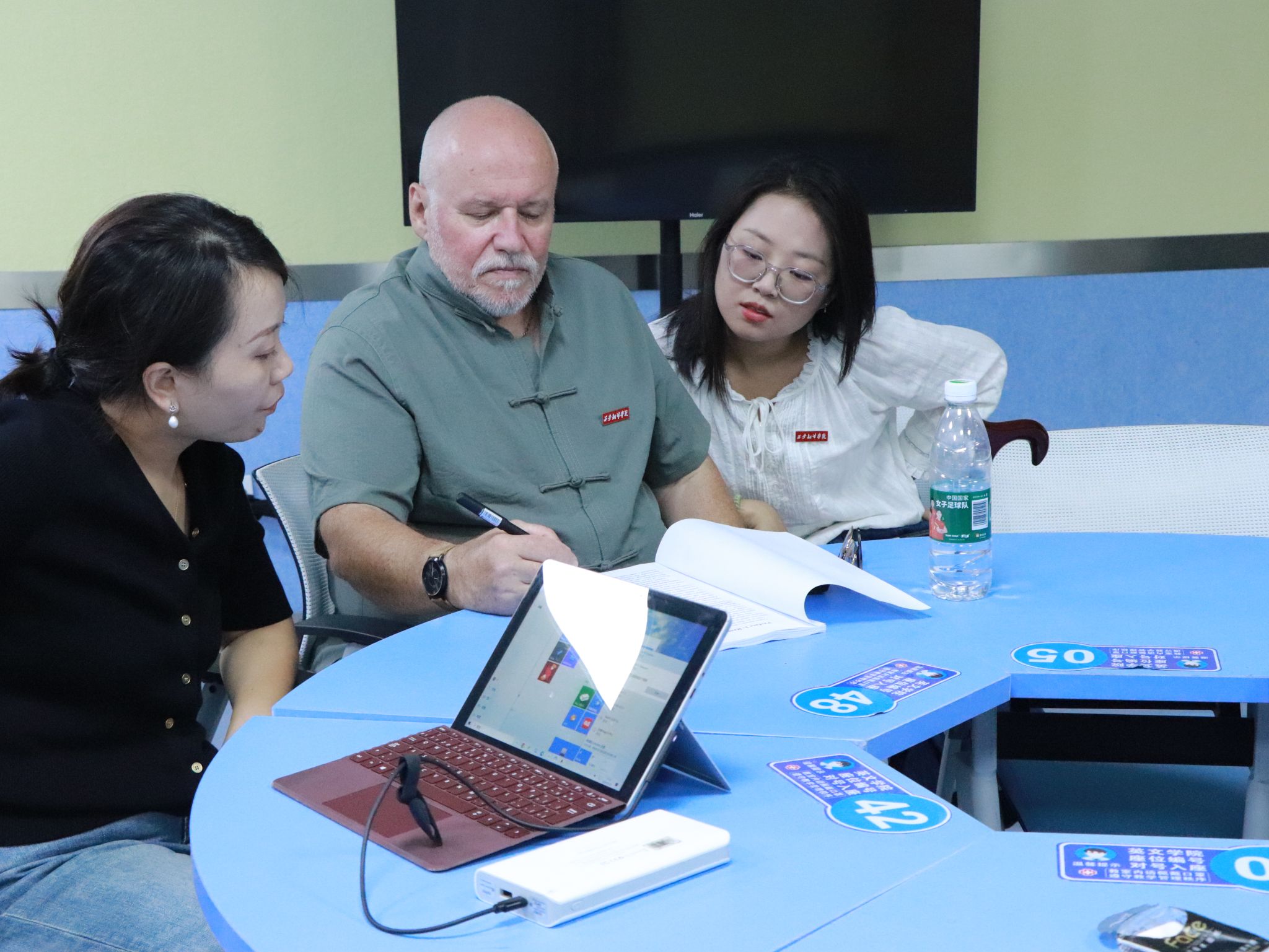 蒲华杰教授不仅在翻译领域有着深厚的造诣,而且在推广中国文化方面也有着丰富的经验。他的到访为项目组成员提供了宝贵的学习和交流机会。在蒲华杰教授的指导下,项目组成员包括罗飞、郝阿咪、何佳乐、李硕华、师颖妮等老师,共同探讨了如何将这些中华学术精品以精准而生动的外文形式呈现给国际学术界和广大读者。蒲华杰教授凭借其丰富的翻译经验和深厚的汉学素养,为项目组提供了宝贵的意见和建议。