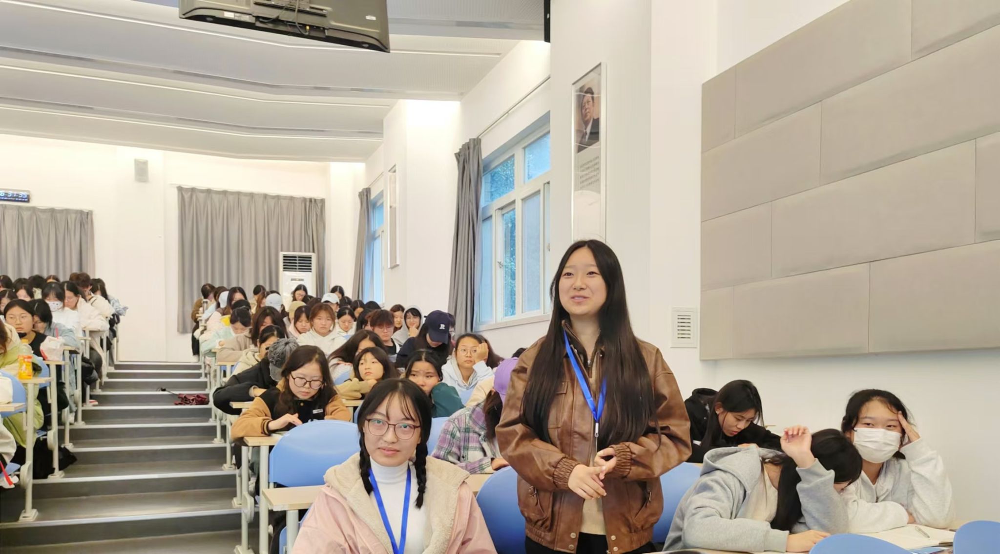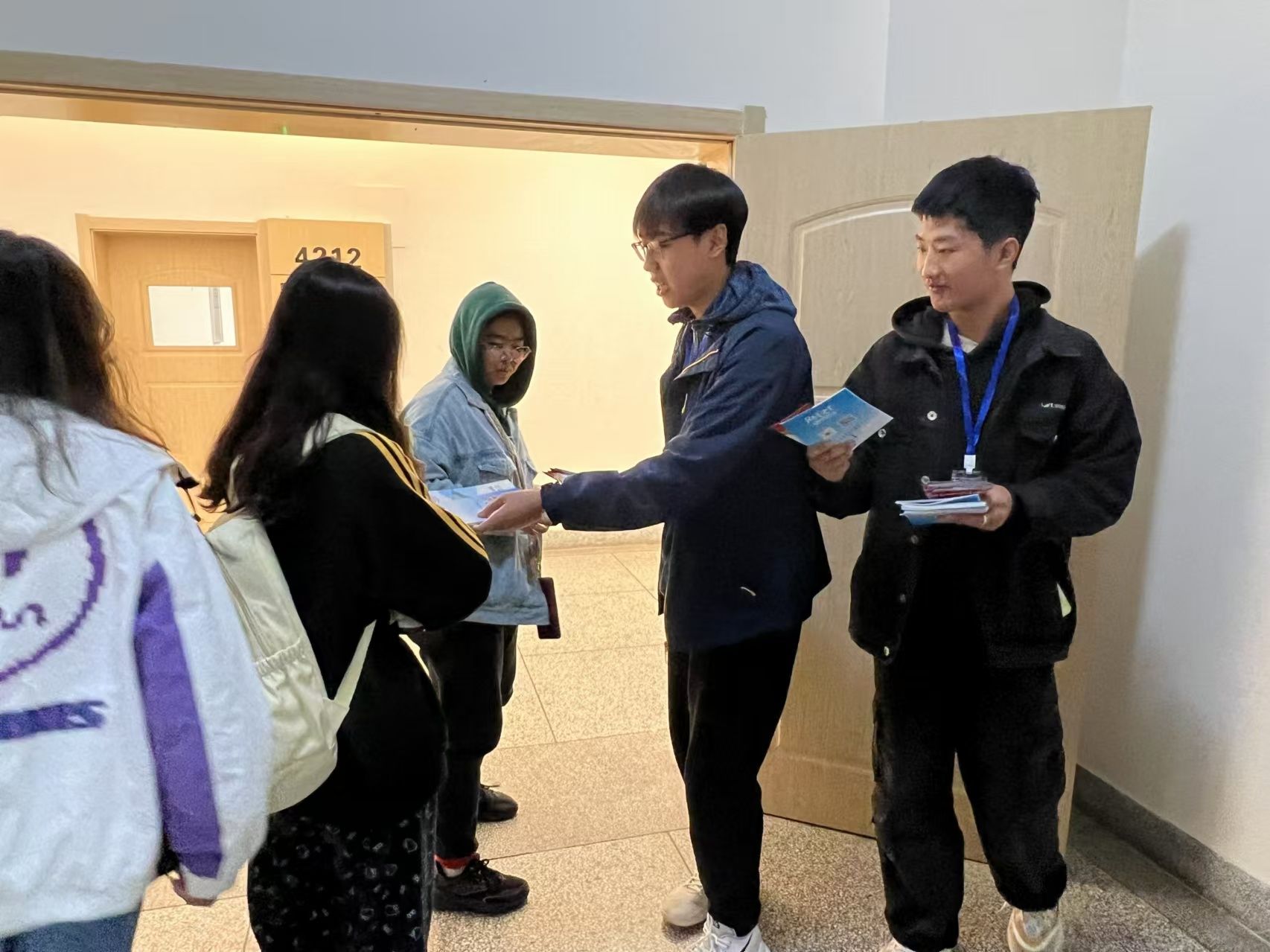 活动于下午3时正式拉开帷幕,孔彬老师和晁玉朦老师带领志愿者团队向参与讲座的学生分发《扫黑除恶、共建平安》宣传册,传递法治温暖。