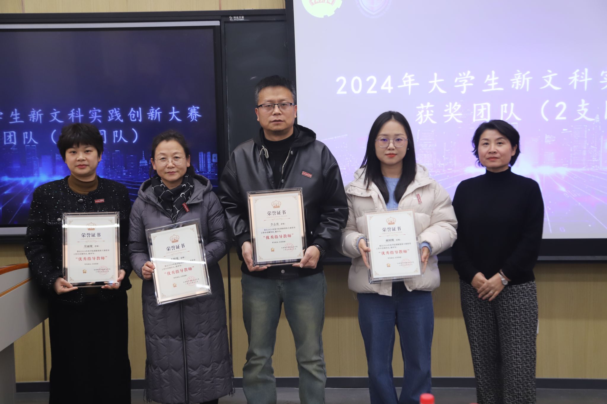 颁奖环节在场的领导老师分别获奖团队及个人颁发获奖证书并合影留念。