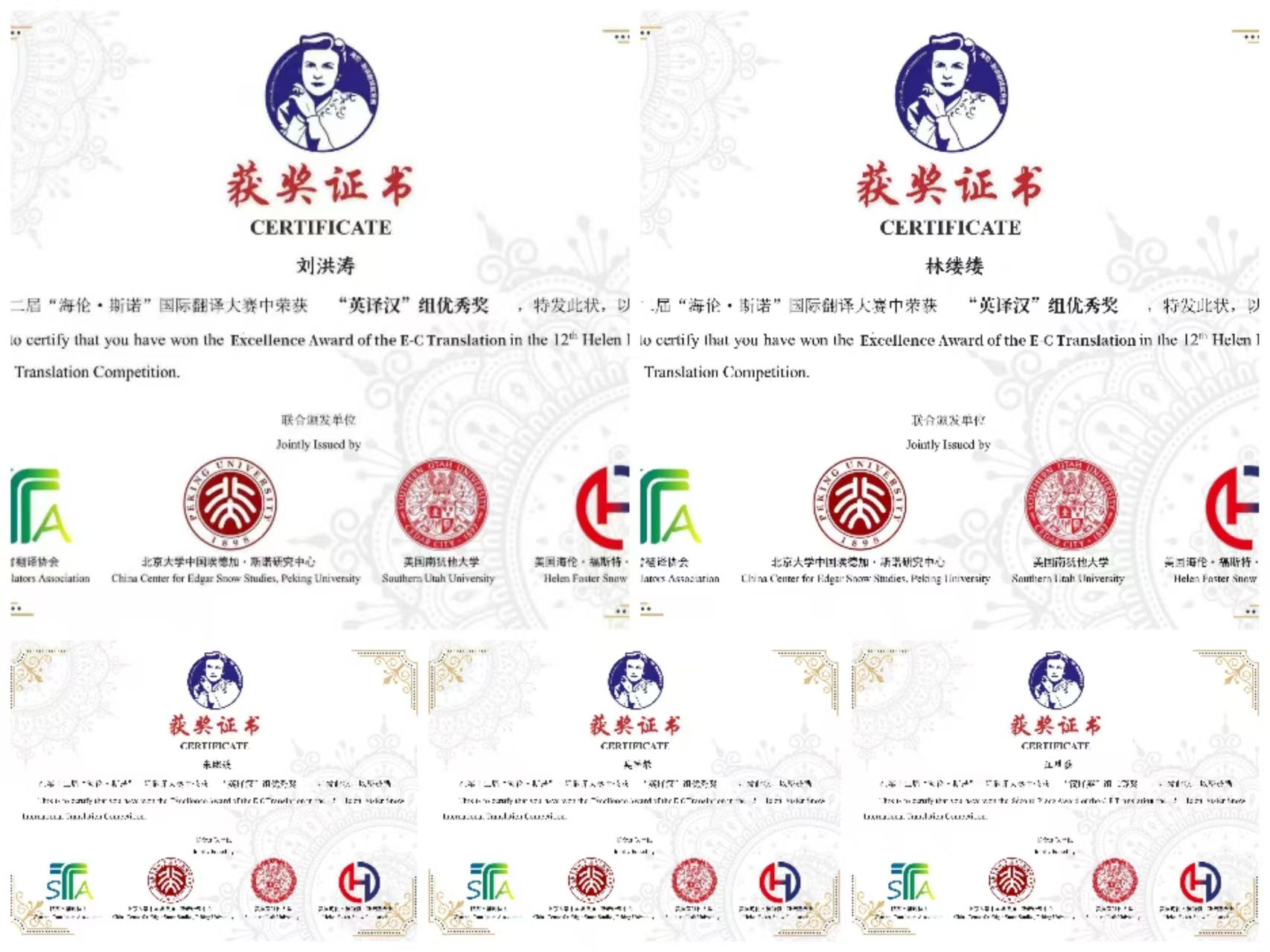 第十二届“海伦·斯诺”国际翻译大赛由陕西省翻译协会、北京大学中国埃德加·斯诺研究中心、美国南犹他大学、美国海伦·福斯特·斯诺基金会联合主办,是一项具有重要影响力的翻译赛事。大赛以“传承斯诺精神、促进中外文化交流”为宗旨,分设英译汉、汉译英两个组别,面向全国高校学生及翻译工作者开放,多年来为我国培养和发掘了大量优秀翻译人才。