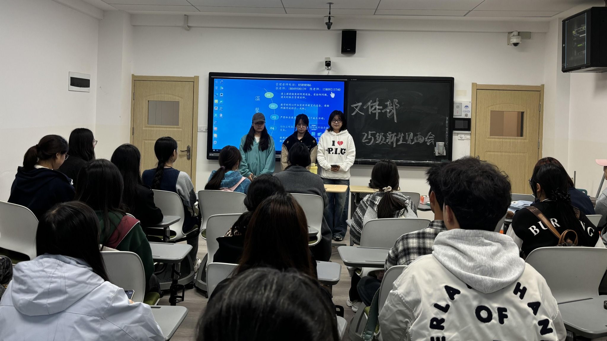 文体部部长熊悦彤在会议中回顾上学期工作历程,精准指出活动开展中的短板并提出针对性改进方案。她还积极号召部门干事深度参与本学期各类文体活动,以充实同学校园生活、打造活力向上的文化环境为方向,凝聚团队实干力量。